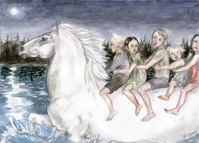 Et pour se mettre dans l'ambiance, rien de tel que dessiner un cheval des ruisseaux en écoutant le dernier album du groupe finlandais Eternal Tears of Sorrow, bien nommé "Children of the Dark Waters"...